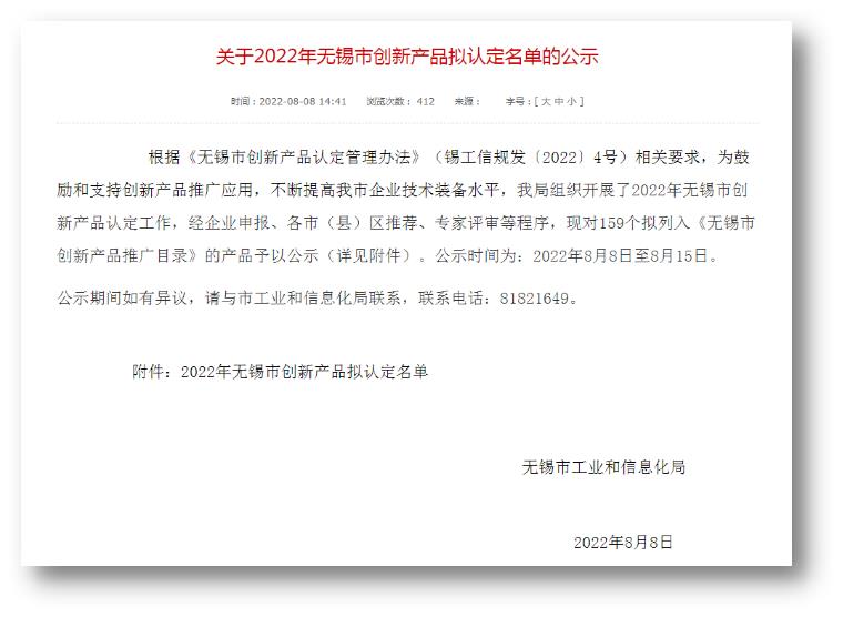 日前,市工信局的2022年無錫市創(chuàng)新產(chǎn)品擬認定名單公示結束,全市共有126企業(yè)的159個產(chǎn)品入選。生命園的安之卓醫(yī)療、睿米信息、時代天使、海萊新創(chuàng)、百泰克生物5家企業(yè)的7個產(chǎn)品入選,其中,百泰克一舉入選3個產(chǎn)品。