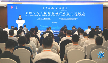 ? ? ? ?下午,作為活動分論壇,無錫市人民政府同址舉辦“生物醫(yī)藥及醫(yī)療器械產(chǎn)業(yè)合作交流會”,來自無錫生物醫(yī)藥和醫(yī)療器械行業(yè)的跨國公司高層、行業(yè)協(xié)會、投行代表近150人齊聚一堂,以“生態(tài)融合 開放共贏”為主題,掀起一場產(chǎn)業(yè)融合發(fā)展的“頭腦風(fēng)暴”,為加快推動我市生物醫(yī)藥產(chǎn)業(yè)集群創(chuàng)新發(fā)展探尋新藍(lán)海、開拓新未來?;萆絽^(qū)泛生子、茵絡(luò)醫(yī)療、時代天使、保諾生物、凱信遠(yuǎn)達(dá)、帕母醫(yī)療等十多位代表企業(yè)負(fù)責(zé)人應(yīng)邀出席。